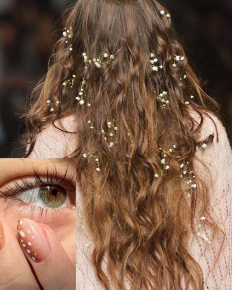 Natura selvaggia, lentiggini finte (disposte con precisione chirurgica), unghie effetto libellula e toni terrosi.