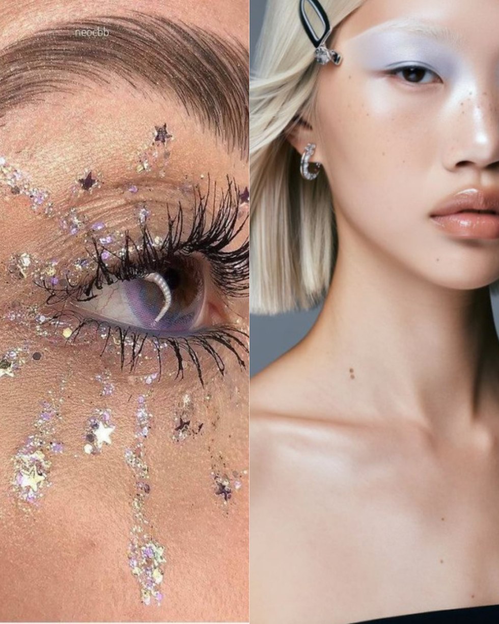 I toni caldi vanno in pensione. Il 2026 è glaciale: trucco satinato, sfumature argento e pelle che riflette la luce come vetro ghiacciato.